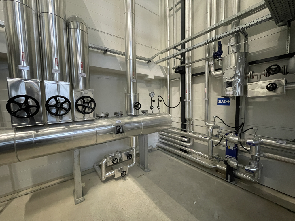 Construction of a new steam gas boiler house with a total power of 2×4 t/h of steam (two boilers with the thermal output of the combustion chamber for natural gas Q (MW) = 2.7), which includes the supply and installation of a complete distribution system, installation of chimneys, thermal water treatment and chemical water treatment.