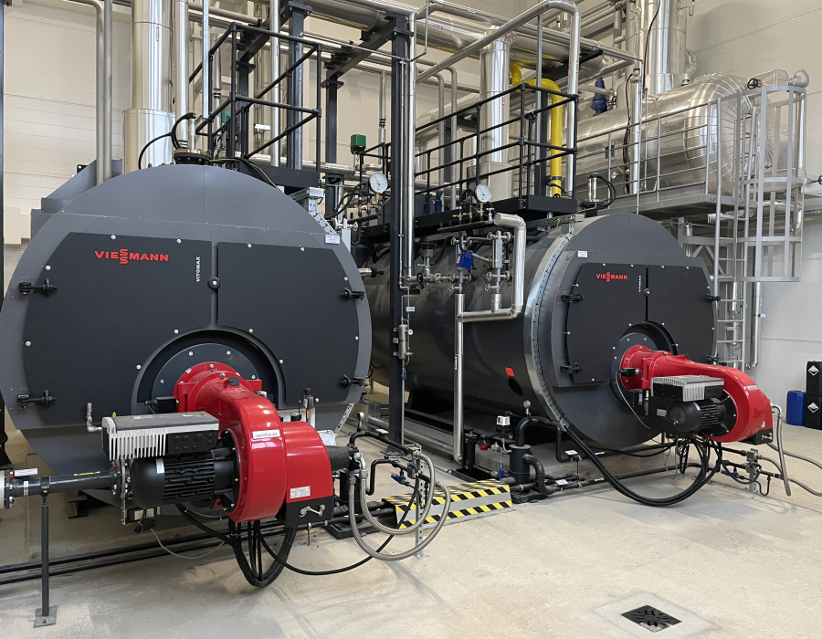 pare, max. tlaka 10 bar pretlaka i temperature 175 ° C. Ugrađena su dva kotla u blok izvedbi te su povezani u kaskadu. Predviđeni su visokoučinkoviti uljno / plinski visokotlačni parni kotlovi s integriranim
