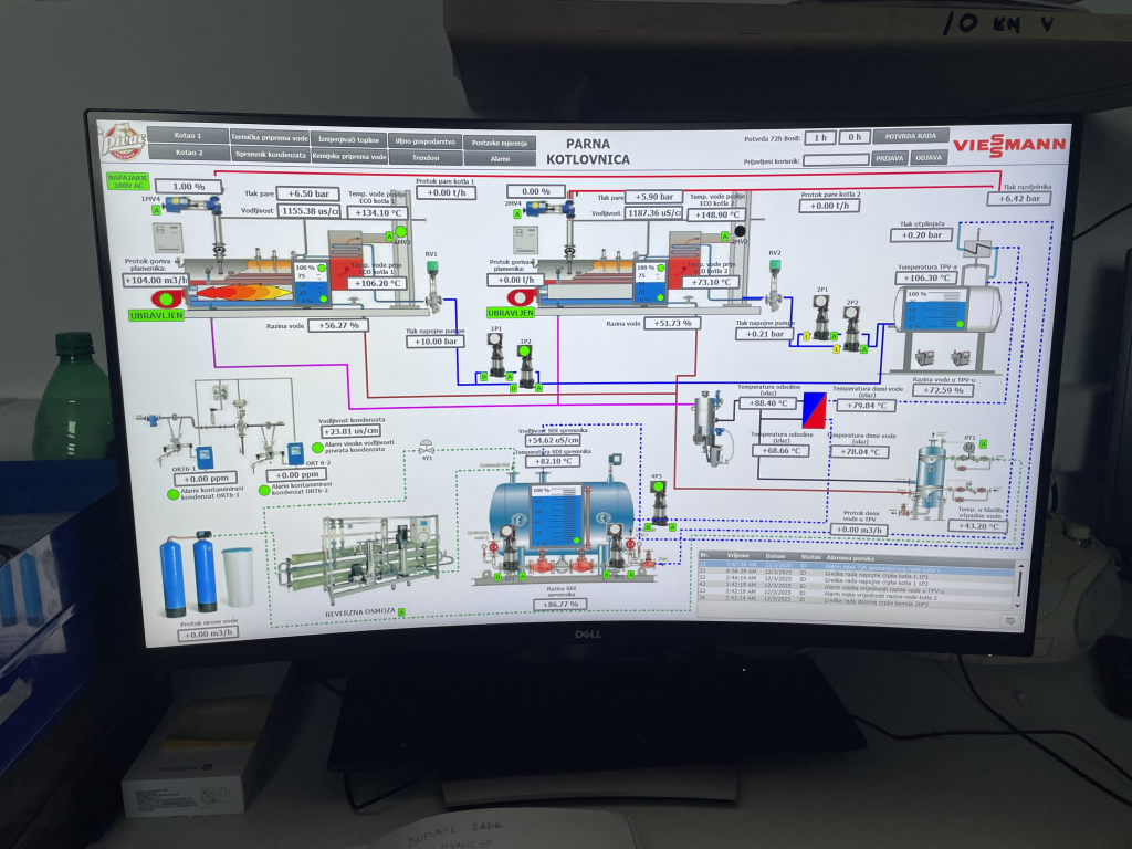 Instalirana je kompletna kemijska i termička pripreme vode s napojnim spremnikom i svim potrebnim